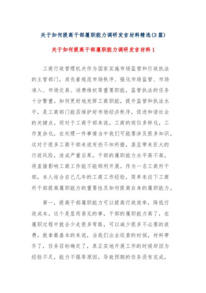 【七哥公文】2024年:(3篇)关于如何提高干部履职能力调研发言材料精选 (1)+更多免费公文+VX:QiGeGongWen2024
