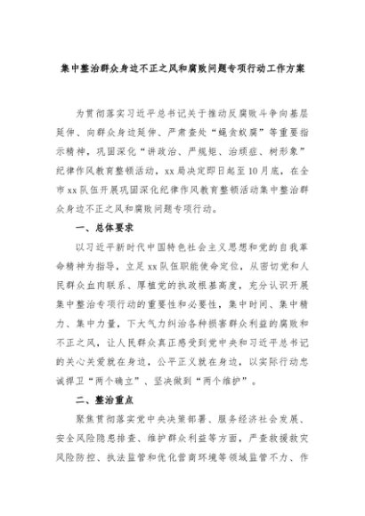 【七哥公文】2024年:集中整治群众身边不正之风和腐败问题专项行动工作方案+更多免费公文+VX:QiGeGongWen2024