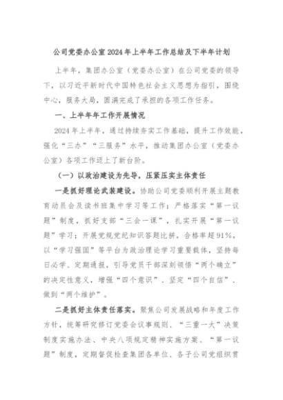【七哥公文】2024年:公司党委办公室2024年上半年工作总结及下半年计划+更多免费公文+VX:QiGeGongWen2024
