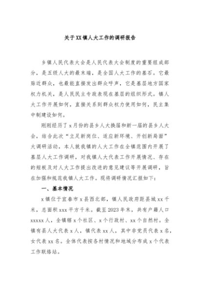 / 【七哥公文】2024年:关于XX镇人大工作的调研报告+更多免费公文+VX:QiGeGongWen2024
