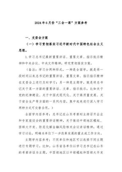 / 【七哥公文】2024年:2024年6月份“三会一课”方案参考+更多免费公文+VX:QiGeGongWen2024