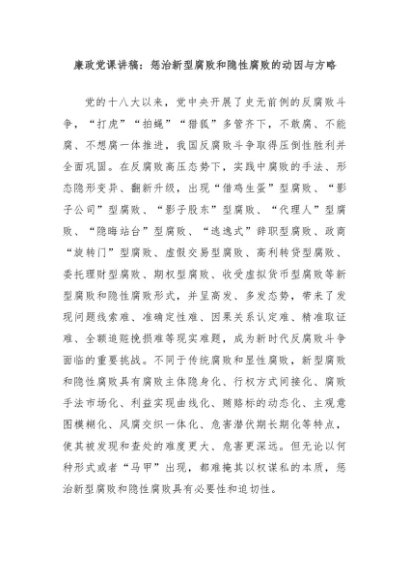 / 【七哥公文】2024年:廉政党课讲稿:惩治新型腐败和隐性腐败的动因与方略+更多免费公文+VX:QiGeGongWen2024
