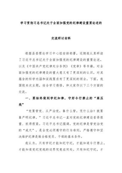 【七哥公文】2024年:学习贯彻习总书记关于全面加强党的纪律建设重要论述的交流研讨材料+更多免费公文+VX:QiGeGongWen2024