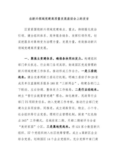 / 【七哥公文】2024年:在新兴领域党建高质量发展座谈会上的发言+更多免费公文+VX:QiGeGongWen2024