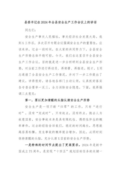 / 【七哥公文】2024年:县委书记在2024年全县安全生产工作会议上的讲话+更多免费公文+VX:QiGeGongWen2024