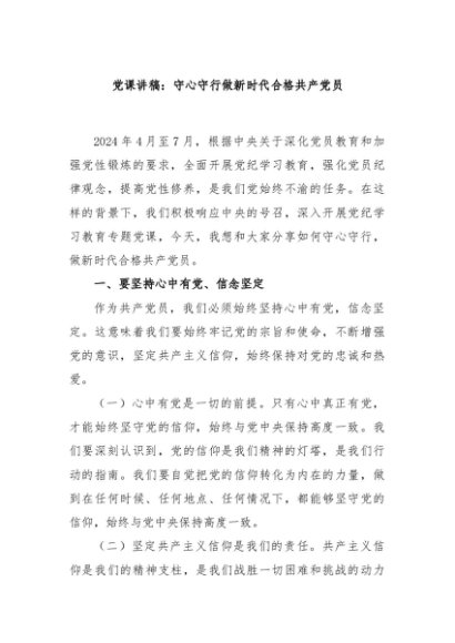 / 【七哥公文】2024年:党课讲稿:守心守行做新时代合格共产党员+更多免费公文+VX:QiGeGongWen2024