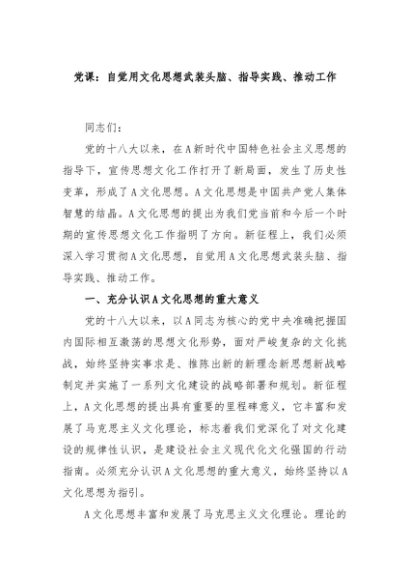 / 【七哥公文】2024年:党课:自觉用文化思想武装头脑、指导实践、推动工作+更多免费公文+VX:QiGeGongWen2024