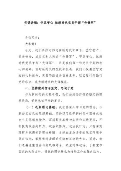 / 【七哥公文】2024年:党课讲稿:守正守心 做新时代党员干部“先锋军”+更多免费公文+VX:QiGeGongWen2024