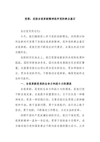 / 【七哥公文】2024年:党课:发扬自我革新精神筑牢党的事业基石+更多免费公文+VX:QiGeGongWen2024
