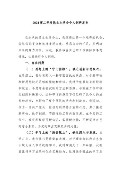 / 【七哥公文】2024年:2024第二季度民主生活会个人剖析发言+更多免费公文+VX:QiGeGongWen2024