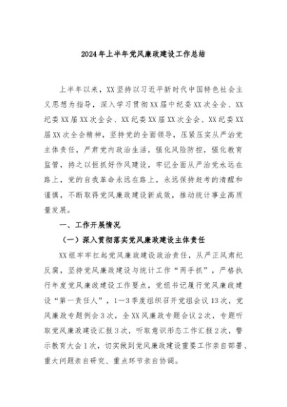 / 【七哥公文】2024年:2024年上半年党风廉政建设工作总结+更多免费公文+VX:QiGeGongWen2024