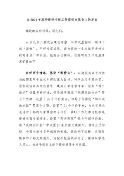 【七哥公文】2024年:在2024年政治建设考核工作座谈交流会上的发言 (1)+更多免费公文+VX:QiGeGongWen2024