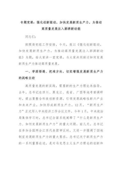 【七哥公文】2024年:专题党课:强化创新驱动,加快发展新质生产力,为推动高质量发展注入澎湃新动能+更多免费公文+VX:QiGeGongWen2024