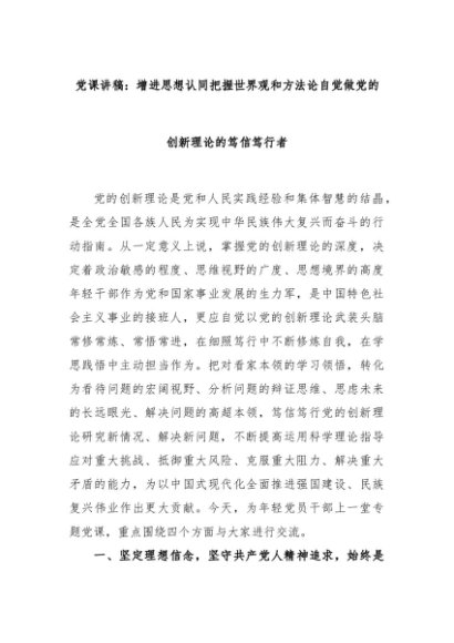 【七哥公文】2024年:党课讲稿:增进思想认同把握世界观和方法论自觉做党的创新理论的笃信笃行者+更多免费公文+VX:QiGeGongWen2024