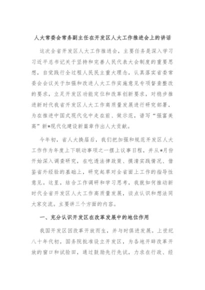 【七哥公文】2024年:人大常委会常务副主任在开发区人大工作推进会上的讲话+更多免费公文+VX:QiGeGongWen2024