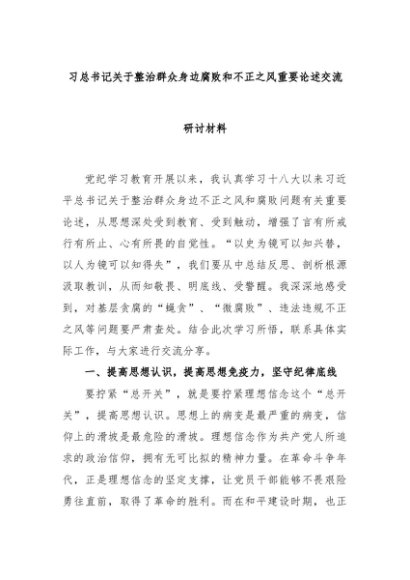 【七哥公文】2024年:习总书记关于整治群众身边腐败和不正之风重要论述交流研讨材料+更多免费公文+VX:QiGeGongWen2024