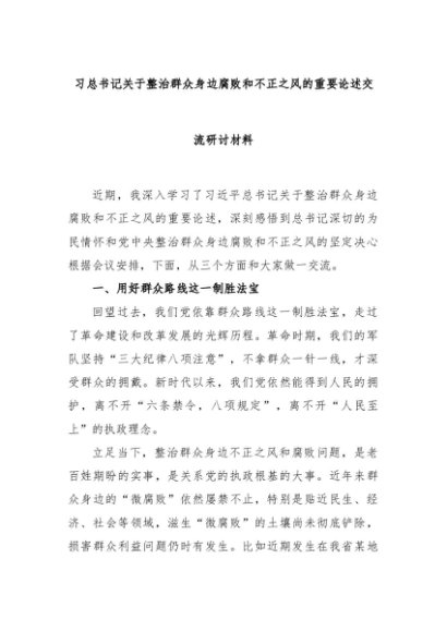 【七哥公文】2024年:习总书记关于整治群众身边腐败和不正之风的重要论述交流研讨材料+更多免费公文+VX:QiGeGongWen2024