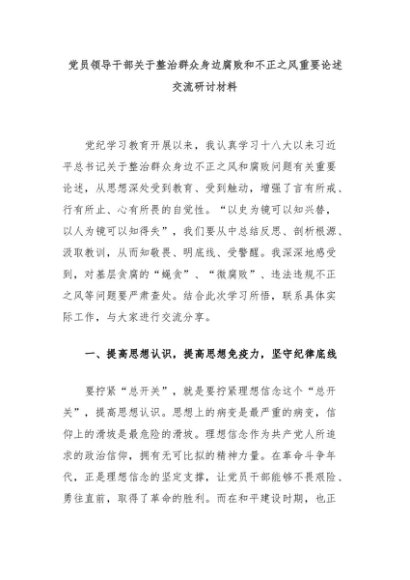 【七哥公文】2024年:党员领导干部关于整治群众身边腐败和不正之风重要论述交流研讨材料+更多免费公文+VX:QiGeGongWen2024