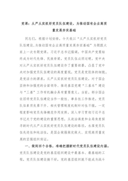 【七哥公文】2024年:党课:从严从实抓好党员队伍建设,为推动国有企业高质量发展夯实基础+更多免费公文+VX:QiGeGongWen2024