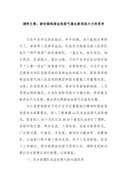 / 【七哥公文】2024年:调研文章:新时期砥砺血性胆气催生新质战斗力的思考+更多免费公文+VX:QiGeGongWen2024