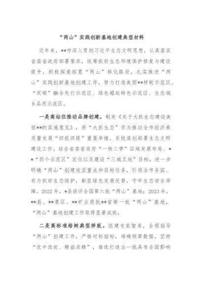 / 【七哥公文】2024年:“两山”实践创新基地创建典型材料+更多免费公文+VX:QiGeGongWen2024