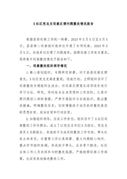 / 【七哥公文】2024年:X社区党总支巡察反馈问题整改情况报告+更多免费公文+VX:QiGeGongWen2024