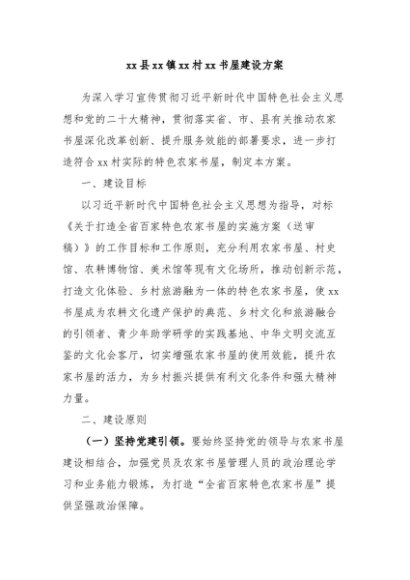 / 【七哥公文】2024年:xx县xx镇xx村xx书屋建设方案+更多免费公文+VX:QiGeGongWen2024