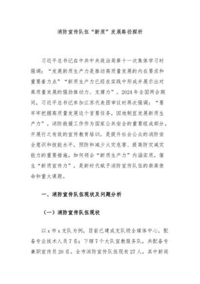 / 【七哥公文】2024年:消防宣传队伍“新质”发展路径探析+更多免费公文+VX:QiGeGongWen2024