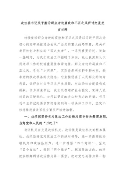 【七哥公文】2024年:政法委书记关于整治群众身边腐败和不正之风研讨交流发言材料+更多免费公文+VX:QiGeGongWen2024