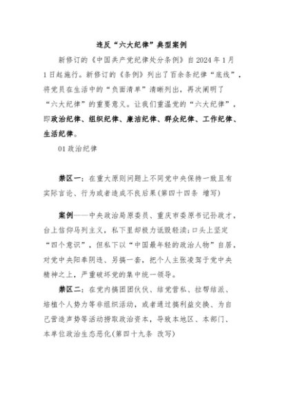 / 【七哥公文】2024年:违反“六大纪律”典型案例+更多免费公文+VX:QiGeGongWen2024