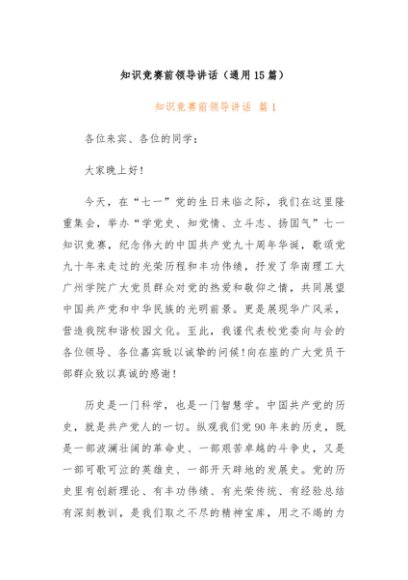 【七哥公文】2024年:(15篇)知识竞赛前领导讲话+更多免费公文+VX:QiGeGongWen2024
