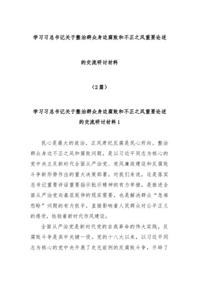 【七哥公文】2024年:(2篇)学习习总书记关于整治群众身边腐败和不正之风重要论述的交流研讨材料+更多免费公文+VX:QiGeGongWen2024
