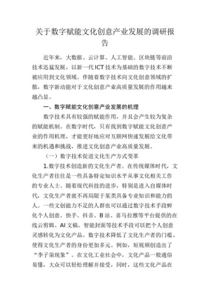 / 【七哥公文】2024年:数字赋能文化创意产业发展的调研报告+更多免费公文+VX:QiGeGongWen2024