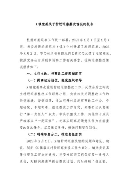 / 【七哥公文】2024年:X镇党委关于村级巡察整改情况的报告+更多免费公文+VX:QiGeGongWen2024
