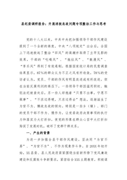 / 【七哥公文】2024年:县纪委调研报告:开展消极怠政问题专项整治工作与思考+更多免费公文+VX:QiGeGongWen2024