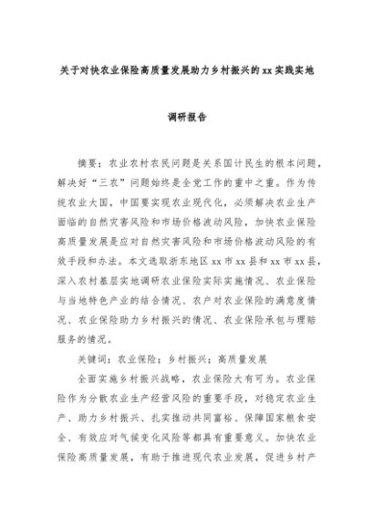 【七哥公文】2024年:关于对快农业保险高质量发展助力乡村振兴的xx实践实地调研报告+更多免费公文+VX:QiGeGongWen2024