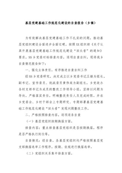 / 【七哥公文】2024年:基层党建基础工作规范化建设的自查报告(乡镇)+更多免费公文+VX:QiGeGongWen2024