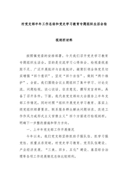 【七哥公文】2024年:关于村党支部半年工作总结和党史学习教育专题组织生活会检视剖析材料(老)+更多免费公文+VX:QiGeGongWen2024