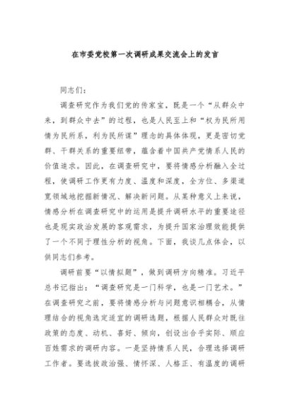 / 【七哥公文】2024年:在市委党校第一次调研成果交流会上的发言+更多免费公文+VX:QiGeGongWen2024
