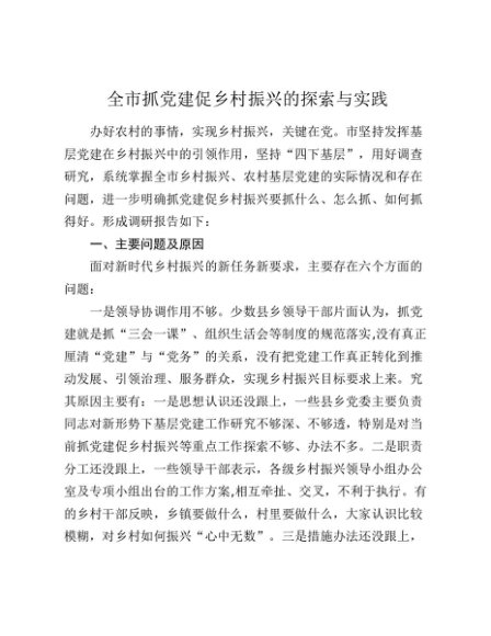 / 【七哥公文】2024年:全市抓党建促乡村振兴的探索与实践调研报告+更多免费公文+VX:QiGeGongWen2024
