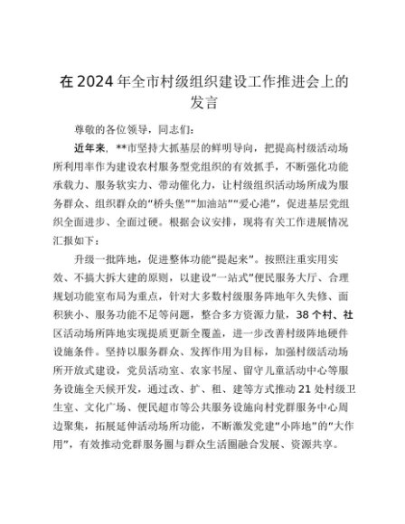 / 【七哥公文】2024年:在2024年全市村级组织建设工作推进会上的发言+更多免费公文+VX:QiGeGongWen2024