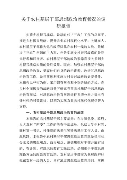 【七哥公文】2024年:农村基层干部思想政治教育状况的调研报告+更多免费公文+VX:QiGeGongWen2024