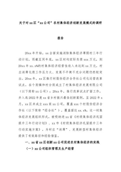 【七哥公文】2024年:关于对xx区“xx公司”农村集体经济创新发展模式的调研报告+更多免费公文+VX:QiGeGongWen2024