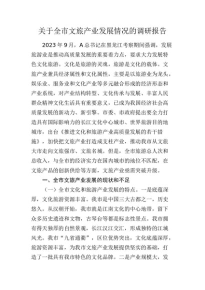 / 【七哥公文】2024年:全市文旅产业发展情况的调研报告+更多免费公文+VX:QiGeGongWen2024