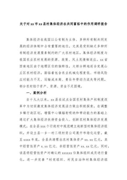 【七哥公文】2024年:关于对xx市xx县村集体经济在共同富裕中的作用调研报告+更多免费公文+VX:QiGeGongWen2024