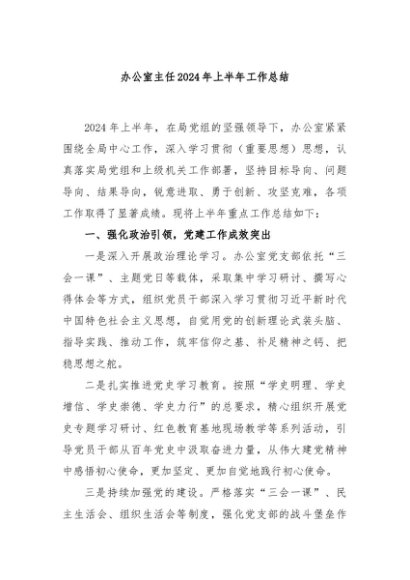 / 【七哥公文】2024年:办公室主任2024年上半年工作总结+更多免费公文+VX:QiGeGongWen2024