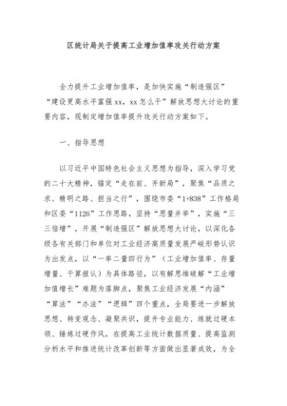 / 【七哥公文】2024年:区统计局关于提高工业增加值率攻关行动方案+更多免费公文+VX:QiGeGongWen2024
