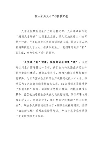 / 【七哥公文】2024年:区人社局人才工作阶段汇报+更多免费公文+VX:QiGeGongWen2024