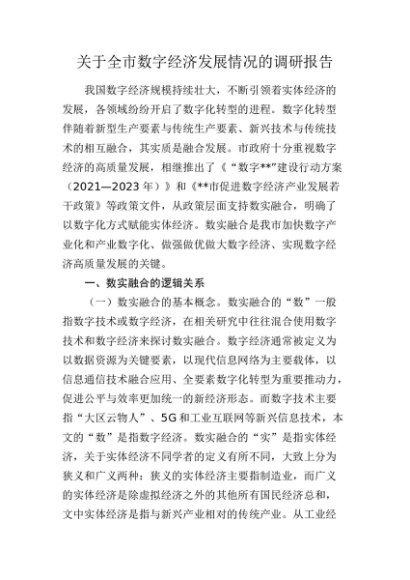 / 【七哥公文】2024年:全市数字经济发展情况的调研报告+更多免费公文+VX:QiGeGongWen2024