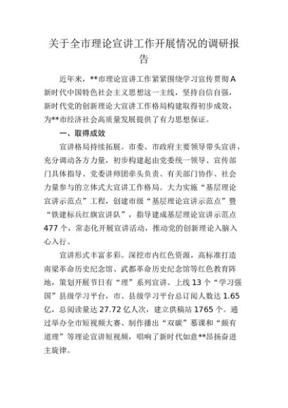 / 【七哥公文】2024年:全市理论宣讲工作开展情况的调研报告+更多免费公文+VX:QiGeGongWen2024